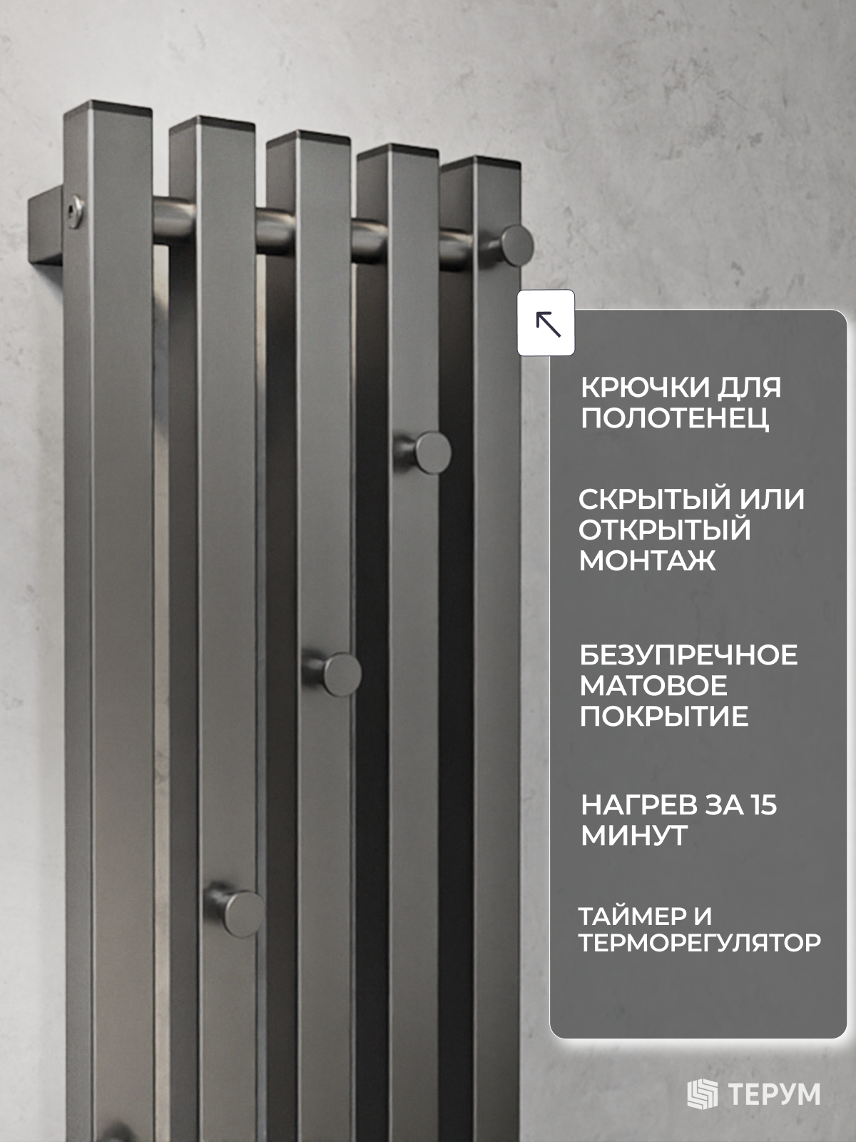 Полотенцесушитель Marco 5 PRO 90х23 серый графит