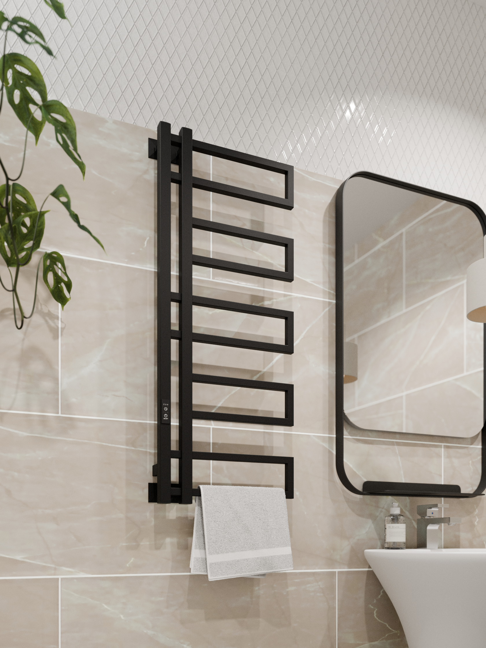 Полотенцесушитель дизайнерский Tilos черный электрический 100 х 40 / скрытый монтаж / левое подключение