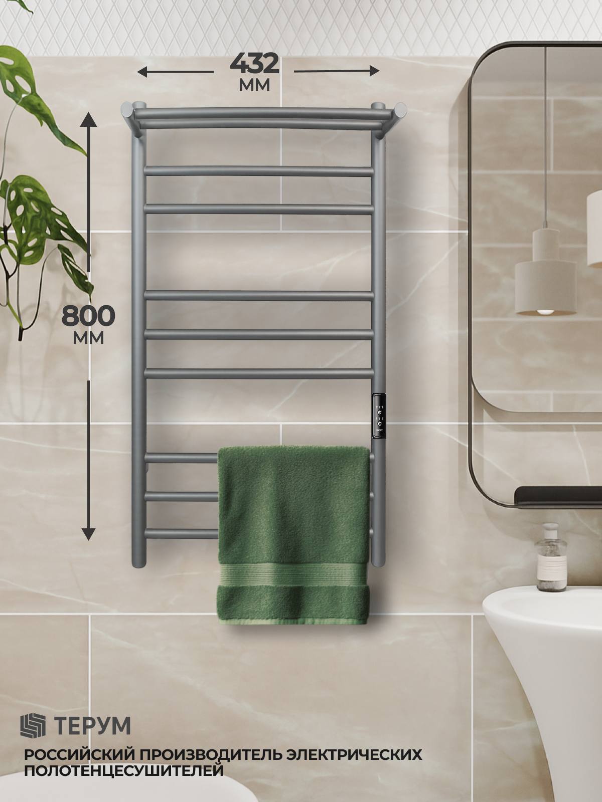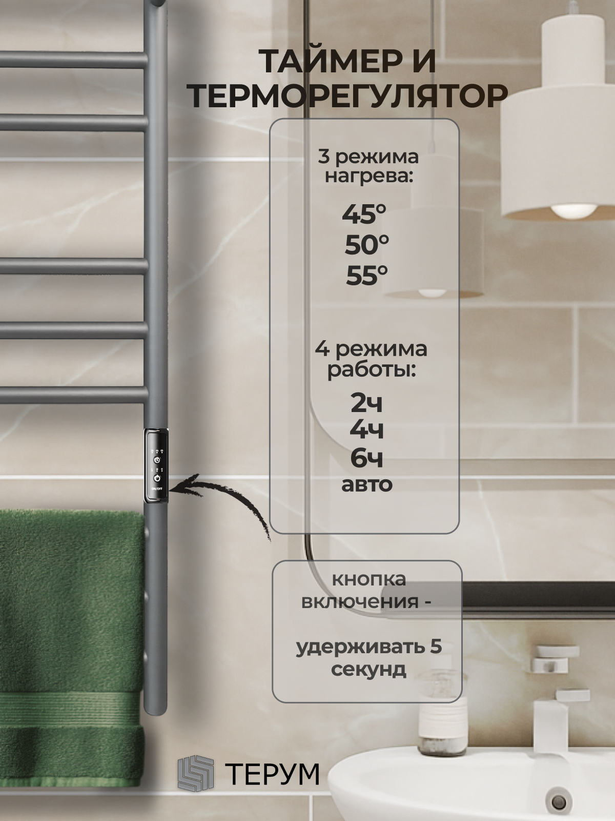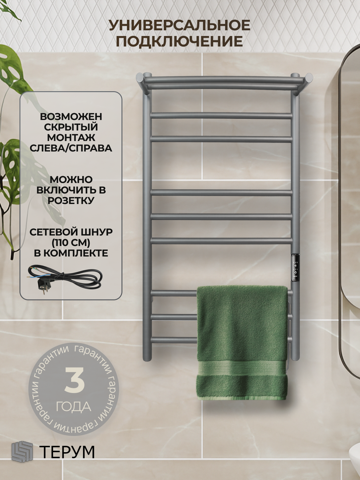 Электрический полотенцесушитель Trio с терморегулятором - это современное решение, сочетающее практичность и элегантный дизайн. Компактные размеры (80×43) делают модель идеальным выбором для небольших ванных комнат.
