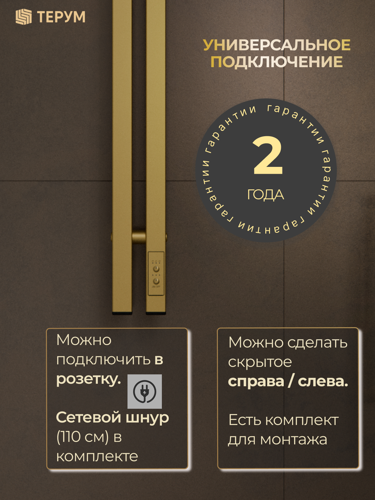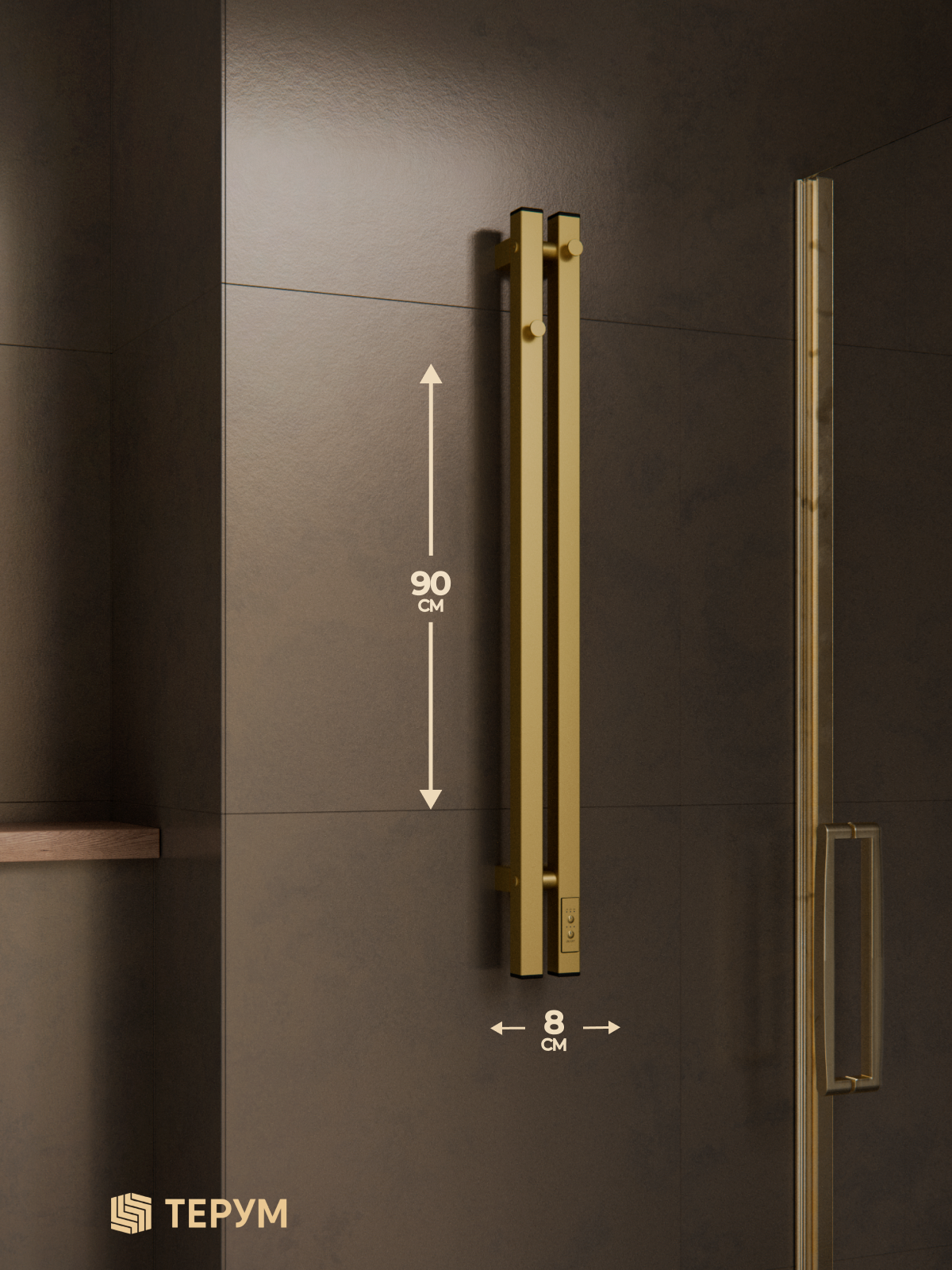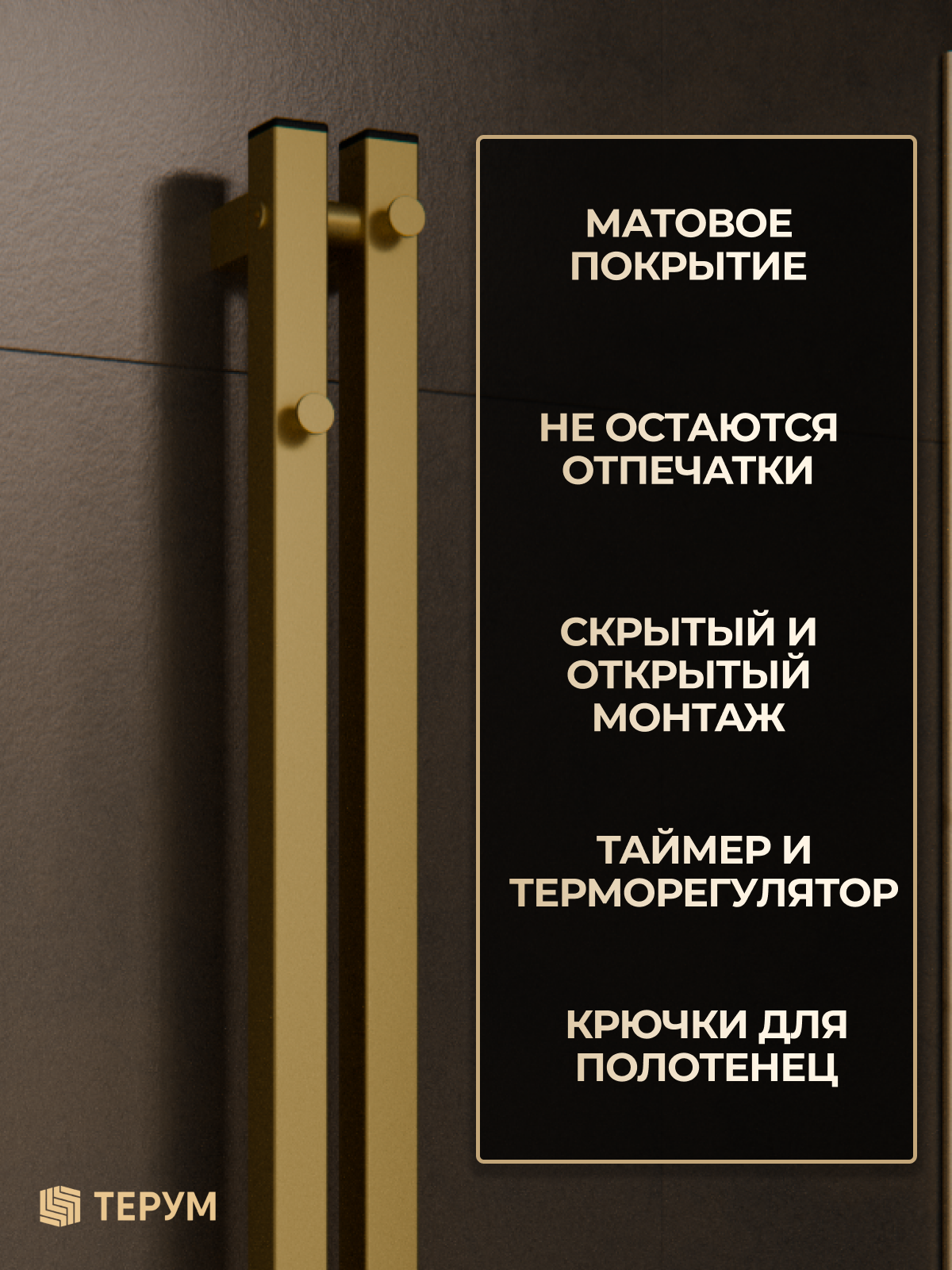 Электрический полотенцесушитель Marco 2 в цвете матовое золото. Компактная вертикальная модель с матовой поверхностью. Помогает создать комфортный микроклимат в ванной и предотвратить появление плесени. Узкий полотенцесушитель с крючками подойдет для размещения даже в небольшой ванной. Матовая поверхность устойчива к царапинам, аккуратные швы, во время эксплуатации изделия на нем не остается отпечатков. Изделие в золотом цвете украшает интерьер, добавляет акцент.
