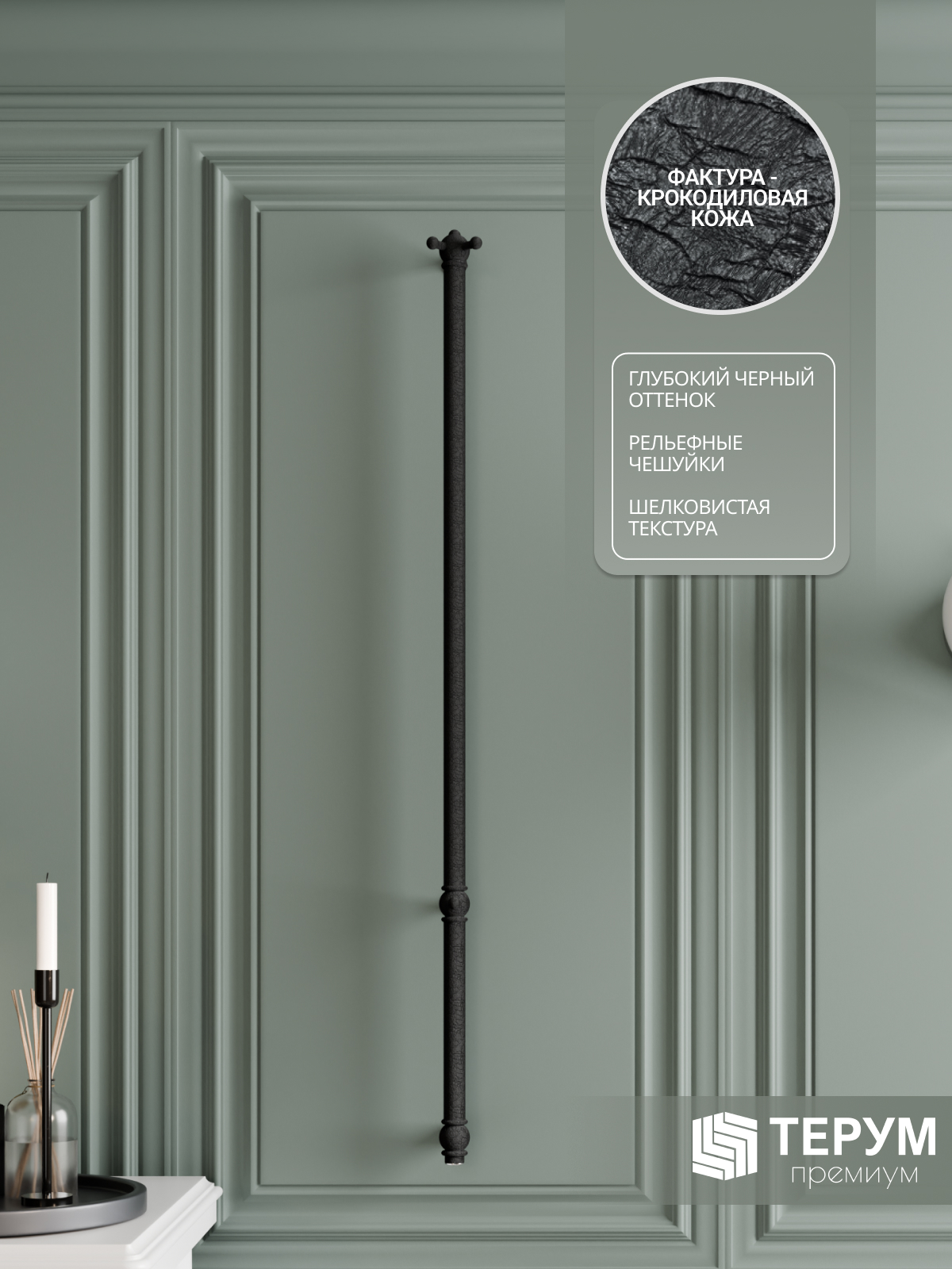 Электрический полотенцесушитель Vintage 1 с фактурой "Крокодиловая кожа" в черном матовом цвете. Компактная вертикальная модель с матовым покрытием. Распределенные по изделию крючки позволяют комфортно разместить текстиль и обеспечить всегда теплые полотенца под рукой. Покрытие устойчиво к царапинам, на нем не остаются отпечатки во время эксплуатации. Узкий полотенцесушитель не занимает много места и подойдет даже для небольшой ванной комнаты. Помогает создать комфортный микроклимат в ванной и предотвратить появление плесени.