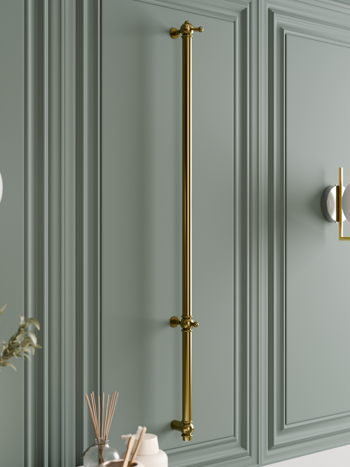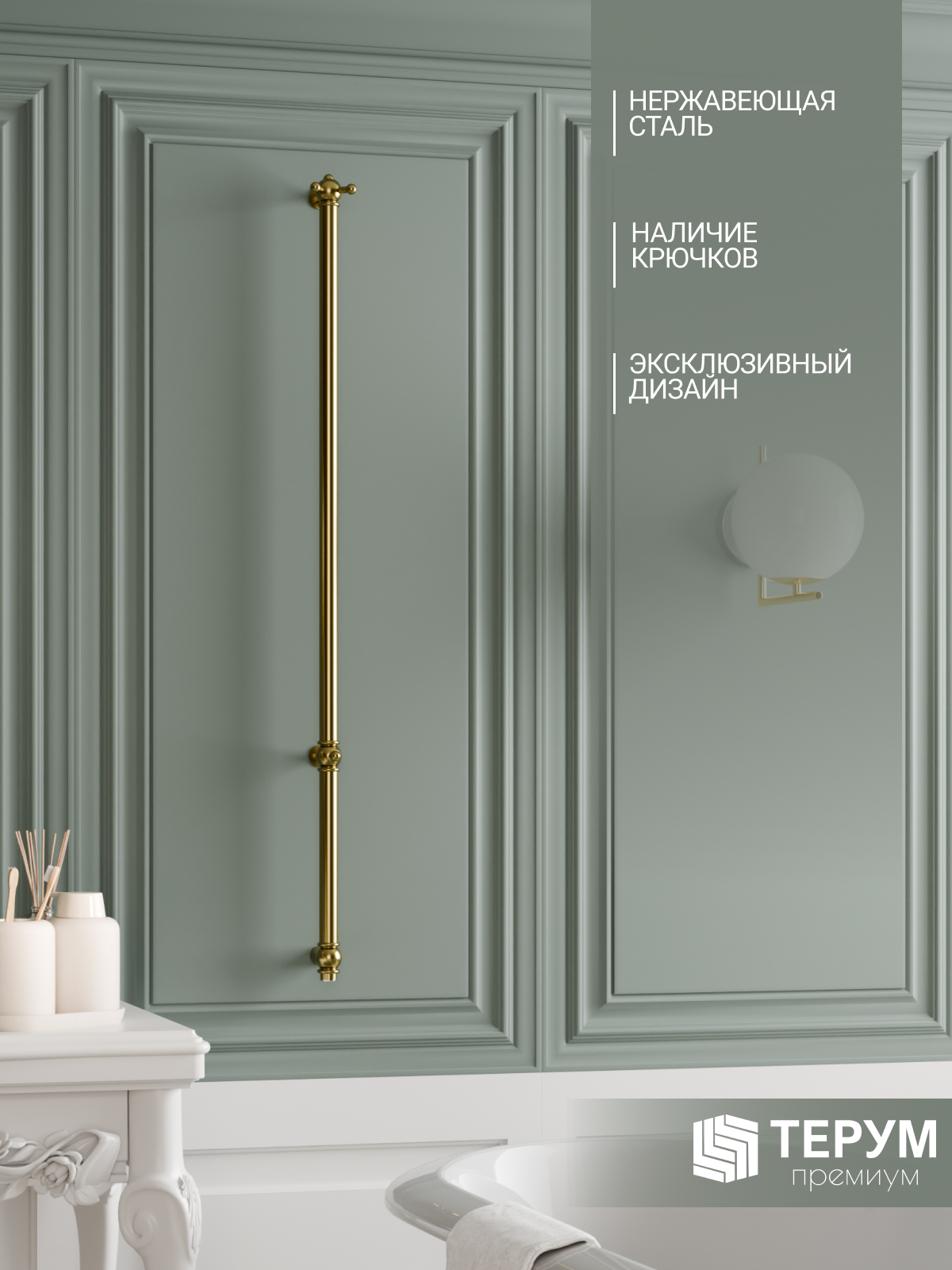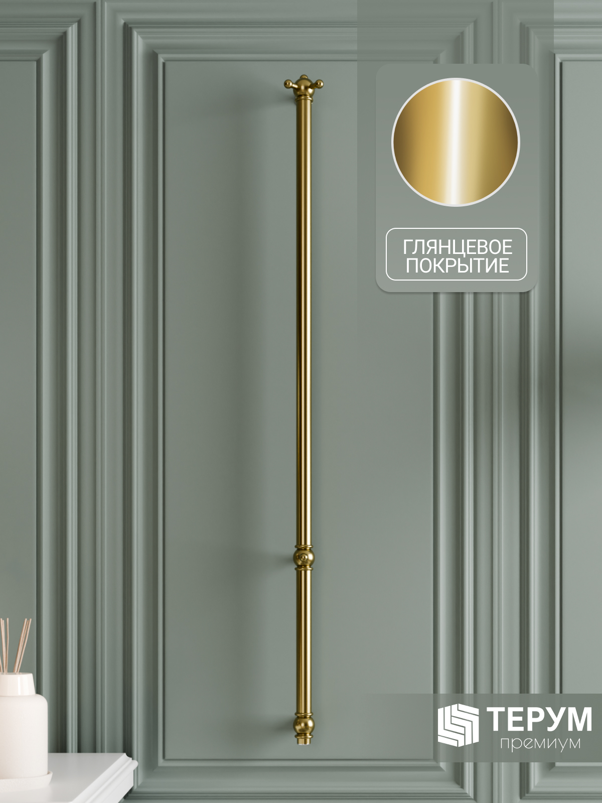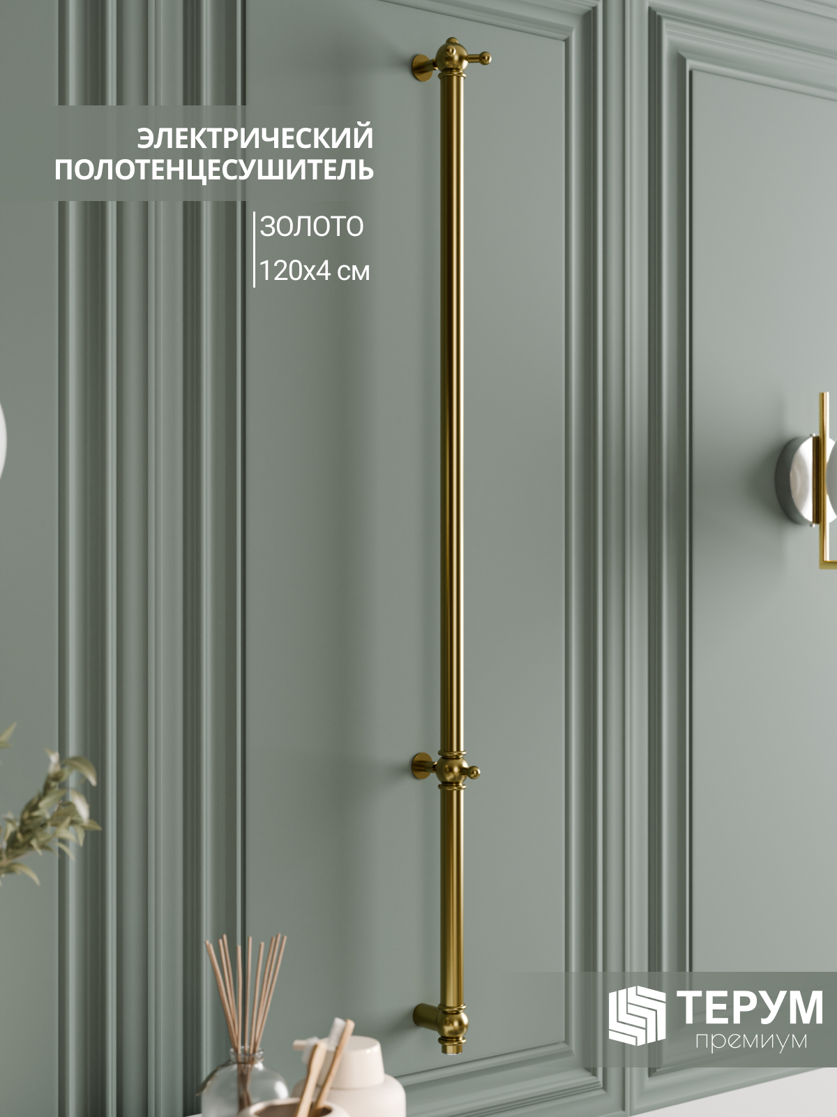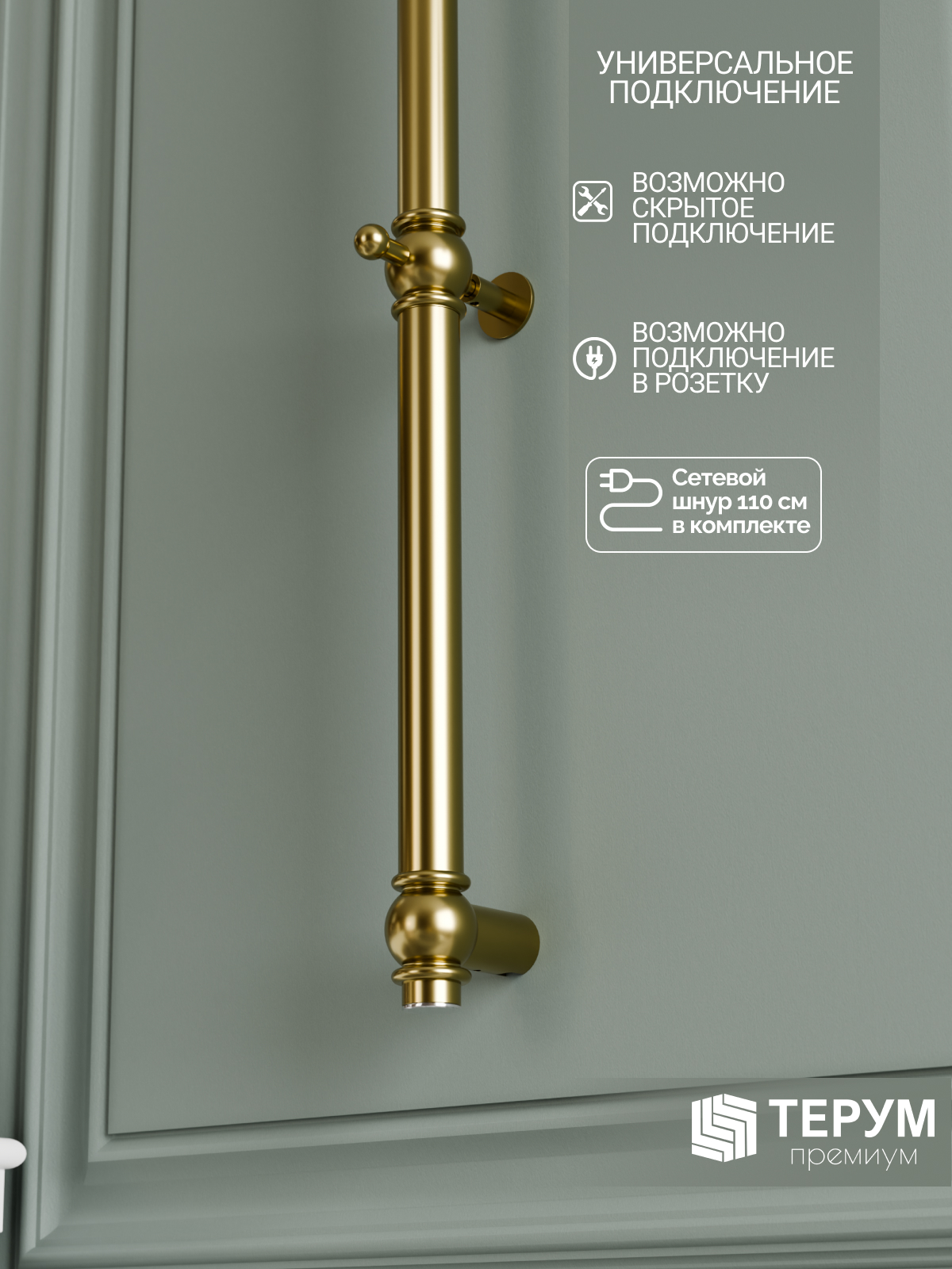 Электрический полотенцесушитель Винтаж 1 с глянцевым покрытием "Золото лак". Компактная вертикальная модель с блестящим золотым покрытием. Распределенные по изделию крючки позволяют комфортно разместить текстиль и обеспечить всегда теплые полотенца под рукой. Покрытие устойчиво к царапинам, на нем не остаются отпечатки во время эксплуатации. Узкий полотенцесушитель не занимает много места и подойдет даже для небольшой ванной комнаты. Помогает создать комфортный микроклимат в ванной и предотвратить появление плесени.