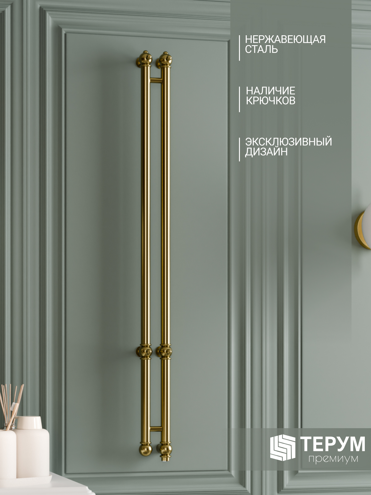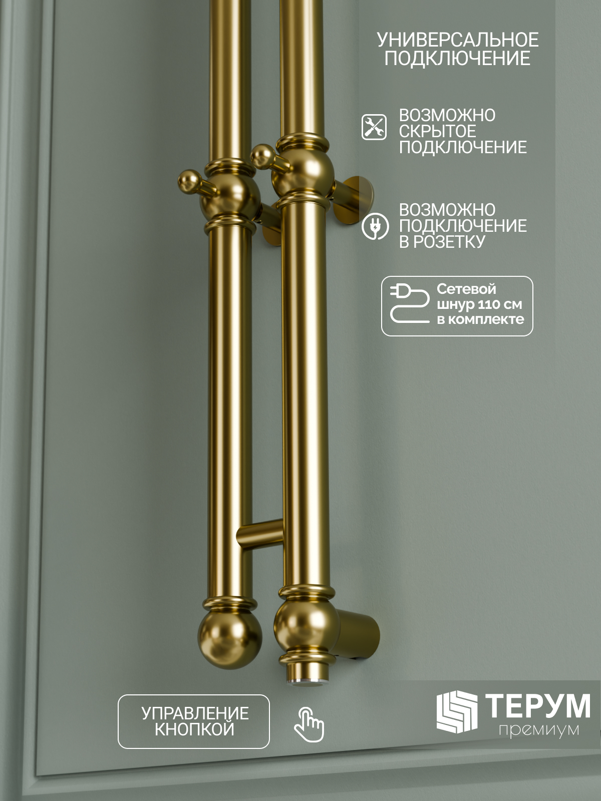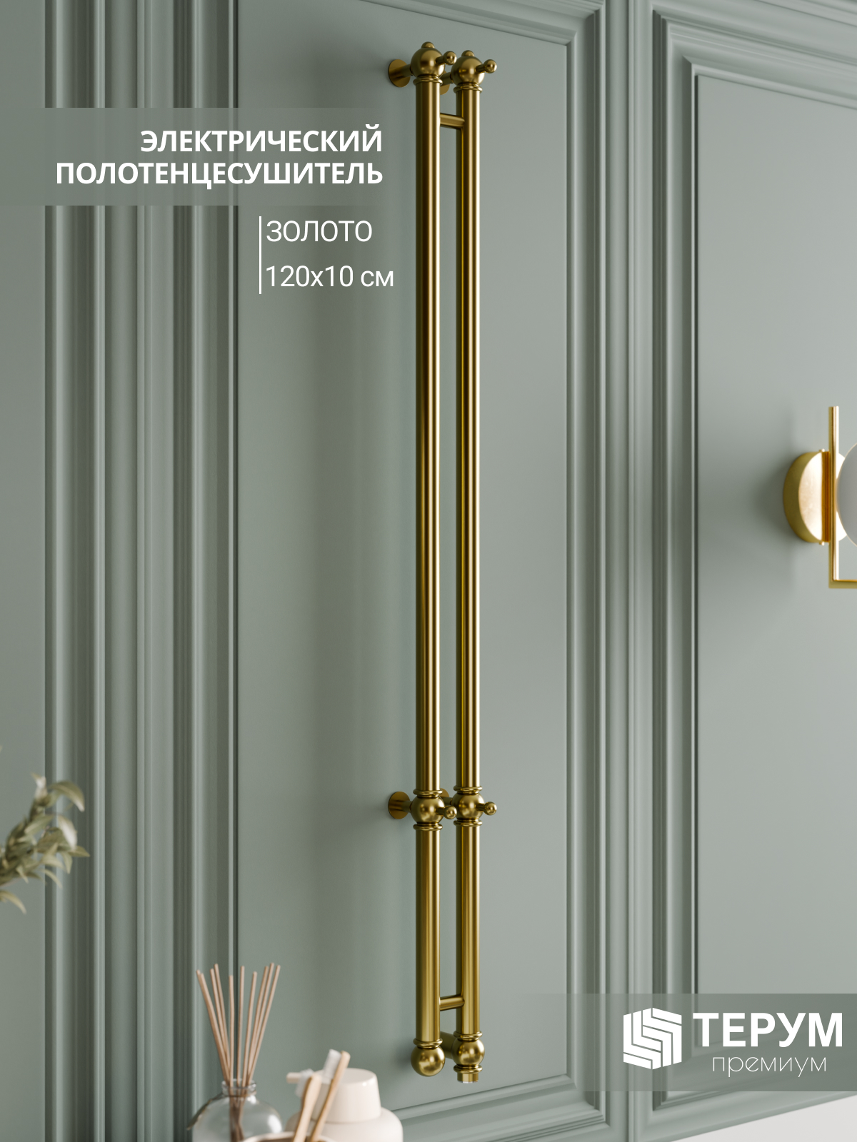 Электрический полотенцесушитель Винтаж 2 с глянцевым покрытием "Золото лак". Компактная вертикальная модель с глянцевым покрытием. Распределенные по изделию крючки позволяют комфортно разместить текстиль и обеспечить всегда теплые полотенца под рукой. Покрытие устойчиво к царапинам, на нем не остаются отпечатки во время эксплуатации. Узкий полотенцесушитель не занимает много места и подойдет даже для небольшой ванной комнаты. Помогает создать комфортный микроклимат в ванной и предотвратить появление плесени.