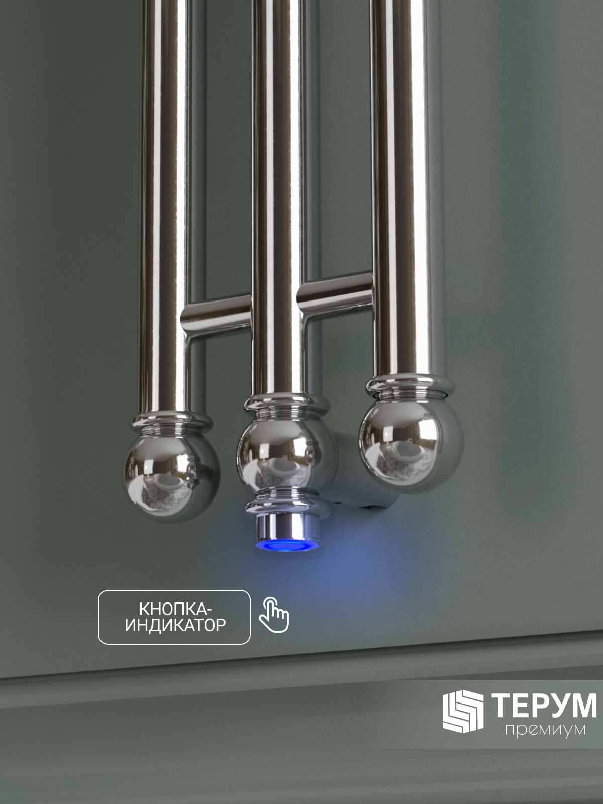 Конструкция: Вертикальная модель из круглого профиля с фактурой и крючками на изделии. Кнопка включения/выключения с подсветкой.