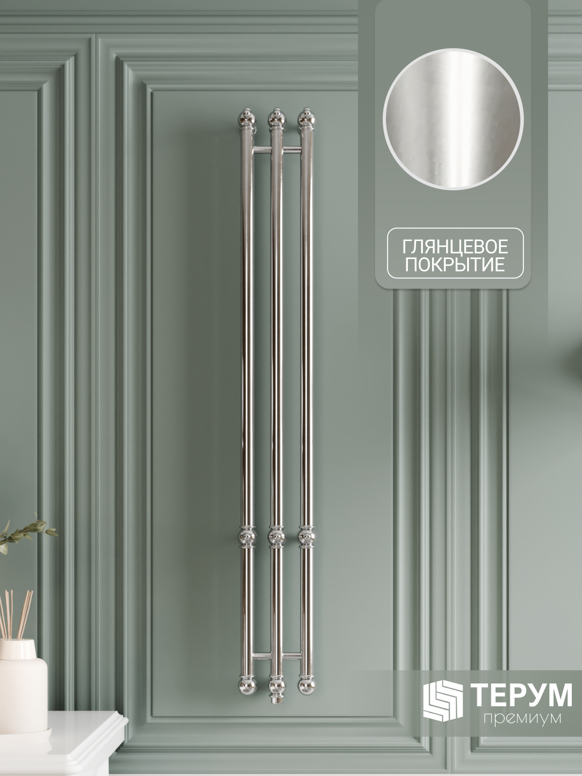 Электрический полотенцесушитель Винтаж 3 с хромированным покрытием. Компактная вертикальная модель с зеркальным блеском. Распределенные по изделию крючки позволяют комфортно разместить текстиль и обеспечить всегда теплые полотенца под рукой. Покрытие устойчиво к царапинам, на нем не остаются отпечатки во время эксплуатации. Узкий полотенцесушитель не занимает много места и подойдет даже для небольшой ванной комнаты. Помогает создать комфортный микроклимат в ванной и предотвратить появление плесени.