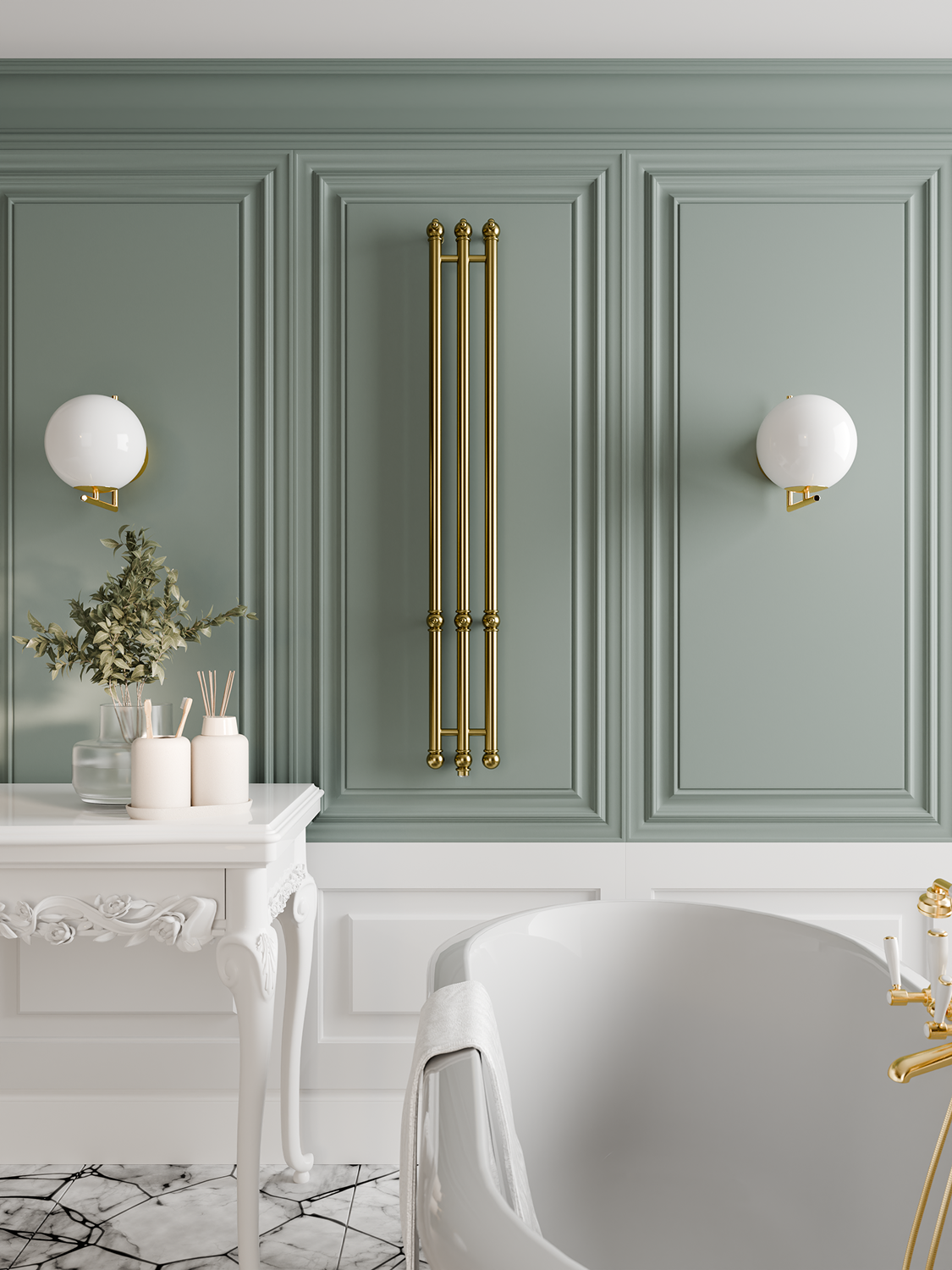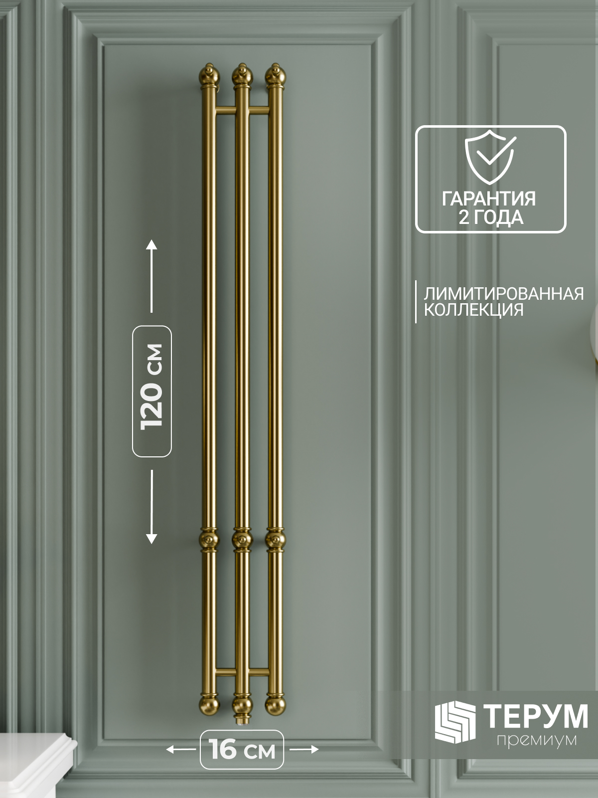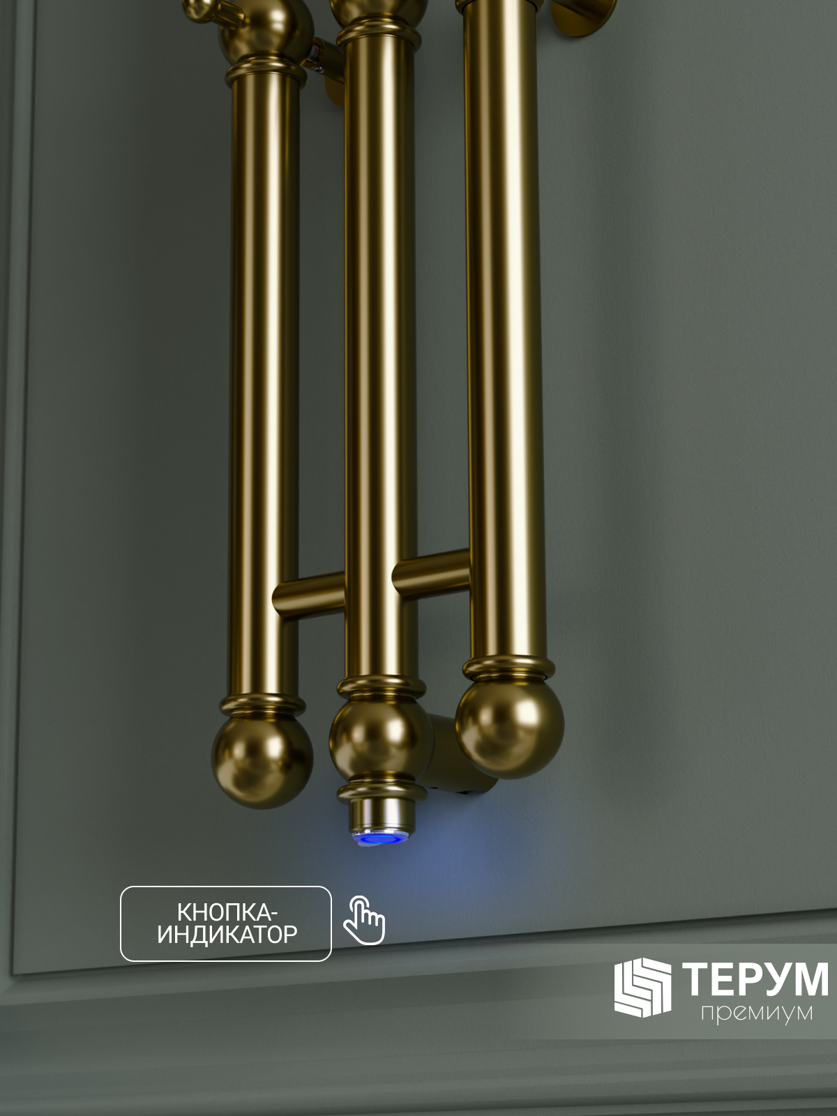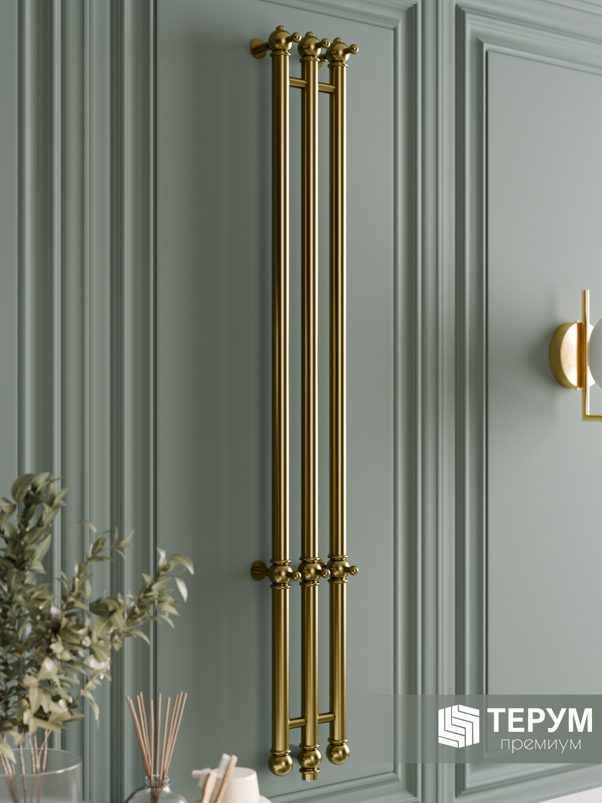 Электрический полотенцесушитель Винтаж 3 с глянцевым покрытием "Золото лак". Компактная вертикальная модель с глянцевым покрытием. Распределенные по изделию крючки позволяют комфортно разместить текстиль и обеспечить всегда теплые полотенца под рукой. Покрытие устойчиво к царапинам, на нем не остаются отпечатки во время эксплуатации. Узкий полотенцесушитель не занимает много места и подойдет даже для небольшой ванной комнаты. Помогает создать комфортный микроклимат в ванной и предотвратить появление плесени.
